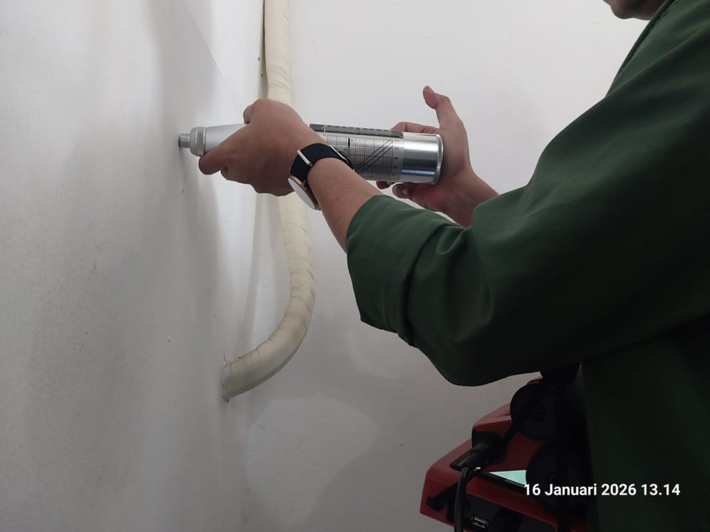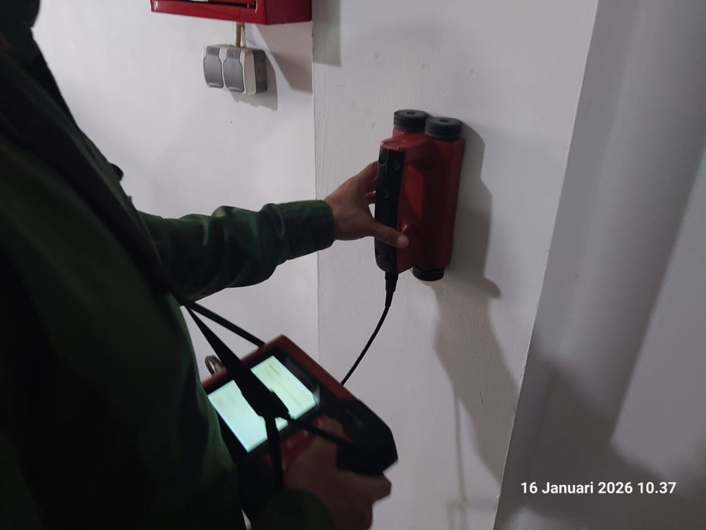 Seluruh proses audit dilaksanakan dengan mengedepankan standar keselamatan kerja serta ketelitian tinggi, mengingat pentingnya fungsi bangunan yang diperiksa. Dokumentasi kegiatan menunjukkan tim melakukan pemeriksaan langsung di berbagai titik struktur, termasuk kolom, balok, dan pelat lantai.